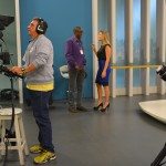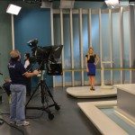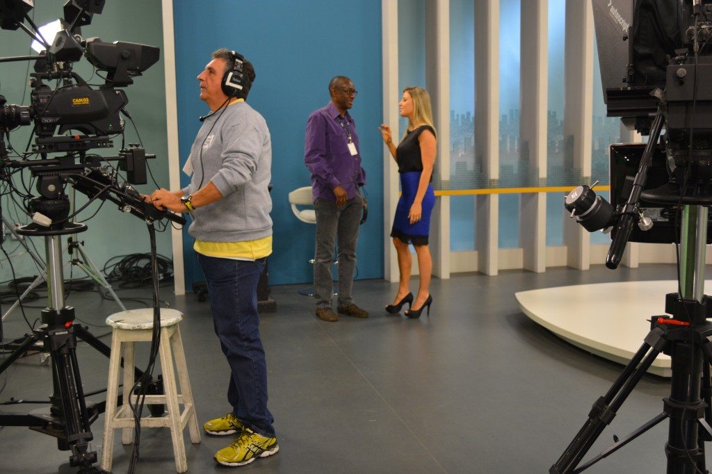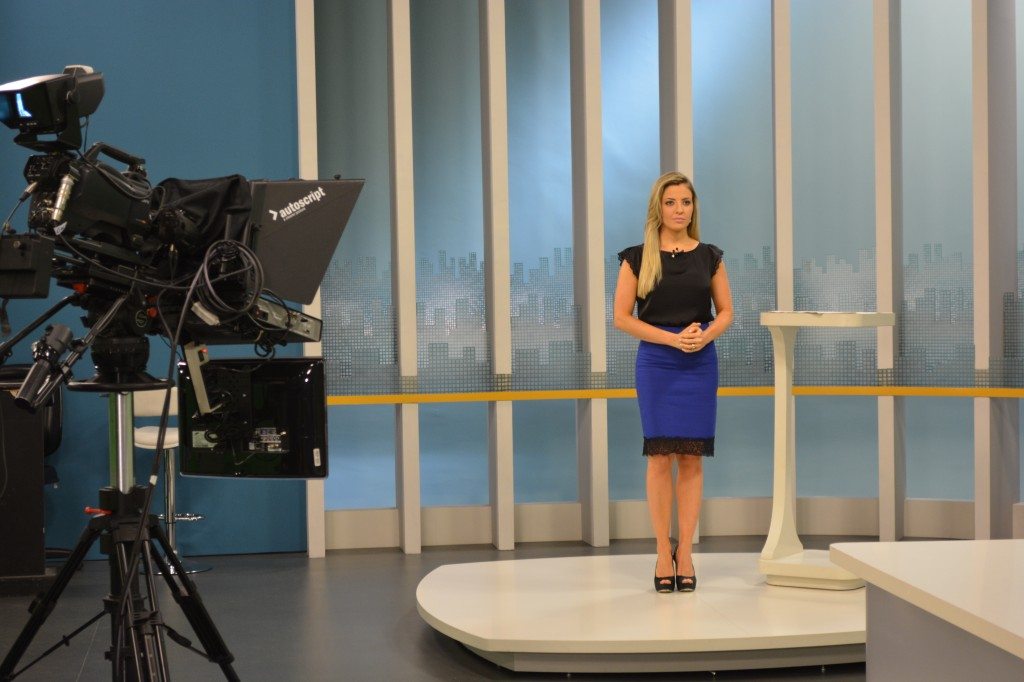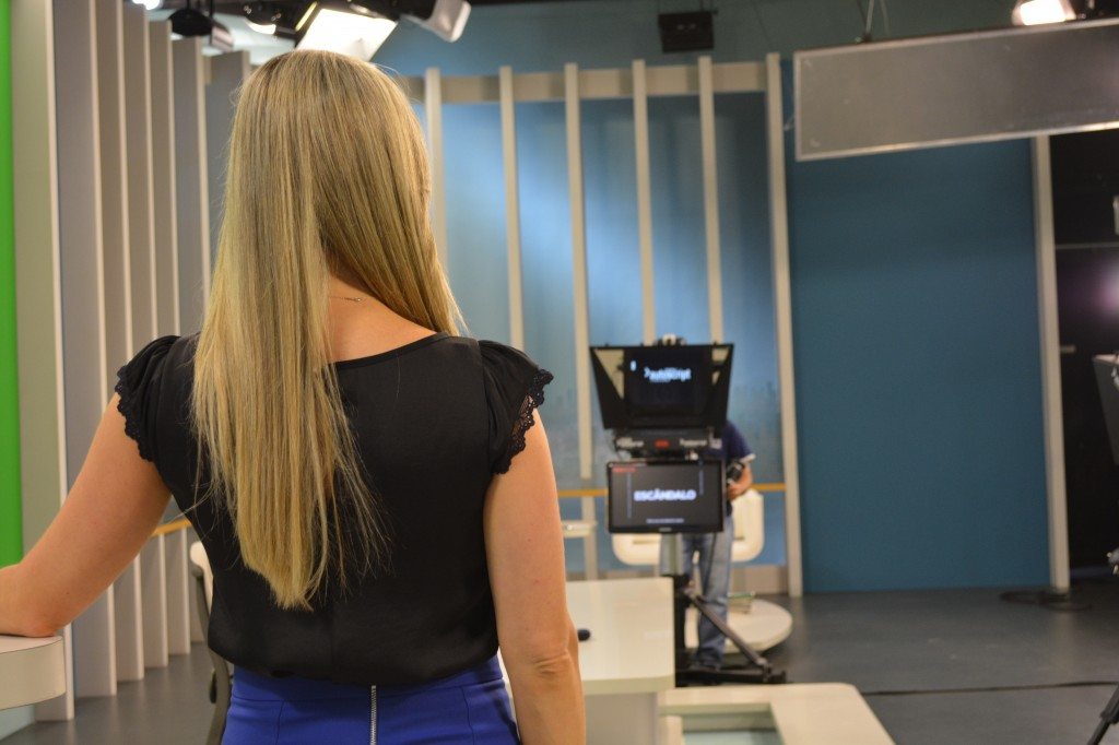 Bastidores das gravações do telejornal "Gazeta News", apresentado por Mariana Armentano.