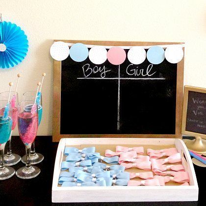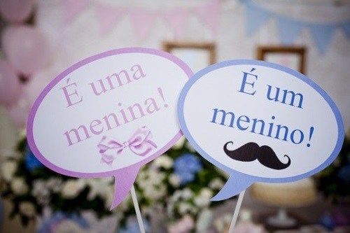Durante a festa, podem ser feitas apostas entre os convidados. Os palpites são anotados em uma lousa e, depois da revelação, conferidos para saber quem acertou na hora de adivinhar o sexo do bebê! Algumas plaquinhas também são usadas para dividir as opiniões na comemoração, como essas de “É menino” e “É menina”.