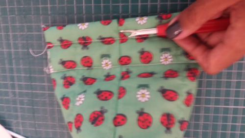 6) Passe uma costura na horizontal formando um saquinho.