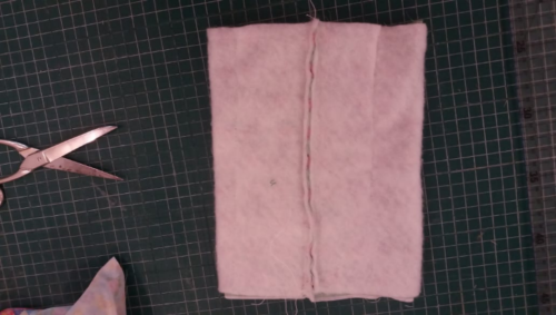 3) Dobre a peça ao meio pela largura (35cm) e passe uma costura na vertical.